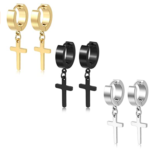 Estos pendientes de cruz vienen en tres colores: plateado, negro y dorado. Están fabricados de acero inoxidable 316L de grado quirúrgico hipoalergénico (sin plomo o níquel). No se decoloran, son pequeños y cómodos de llevar. Su diseño atemporal luce bien en cualquier época del año, sin importar en qué momento del día los uses. En caso de no estar satisfecho, ofrecen 90 días de garantía de devolución o cambio de tu producto.