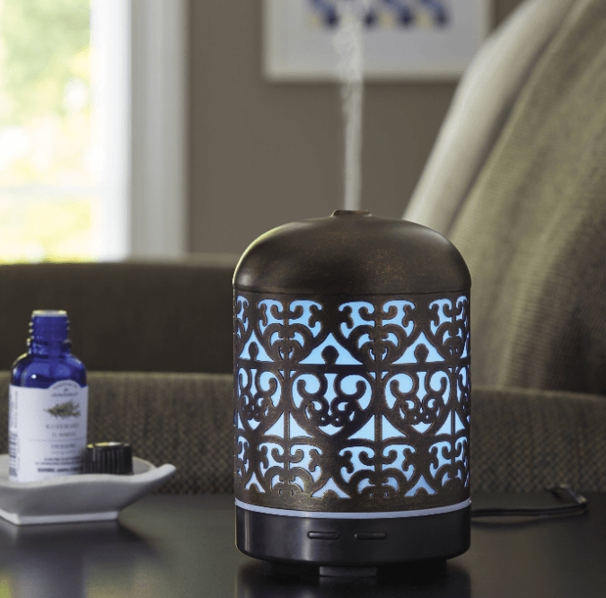 El difusor de aceite esencial de desplazamiento marroquí de Better Homes & Gardens de 100 ml realza su espacio. Este difusor único humidifica el aire al tiempo que mejora el entorno de su hogar o trabajo con una relajante aromaterapia. Este modelo presenta un color relajante con luces LED cambiantes para un efecto adicional. El difusor de aroma Better Homes and Gardens funciona liberando una neblina fría en el aire, que se puede realzar con unas gotas de fragancia o aceite esencial.