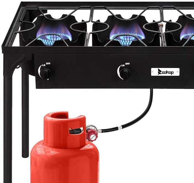 -Potente capacidad de cocción: Equipado con un cabezal de hierro fundido y puede producir la friolera de 150.000 BTU, este potente quemador puede hervir agua y cocinar sus alimentos fácilmente. Y con la potencia de fuego ajustable, que hará que tu cocina sea más deliciosa.