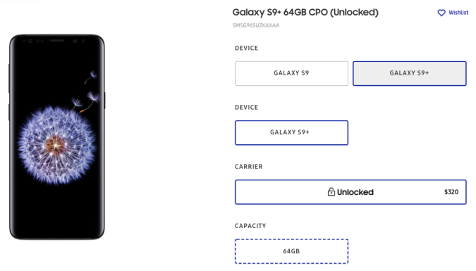 Galaxy S9+ 64GB CPO (Desbloqueado) – $320