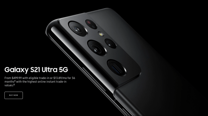 Galaxy S21 Ultra 5G – $499.99 o $13.89 mensuales por 36 mensuales