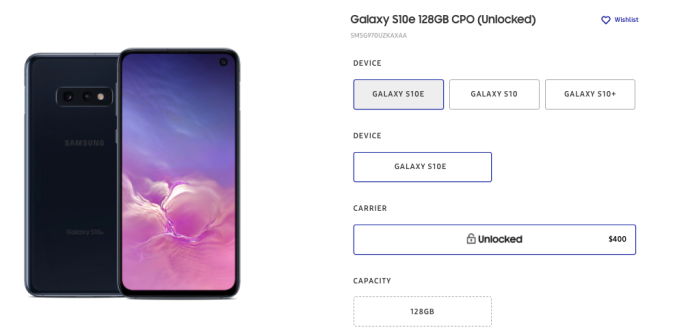 Galaxy S10e 128GB CPO (Desbloqueado) – $400