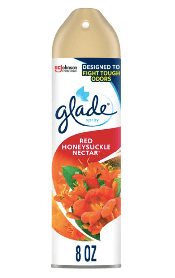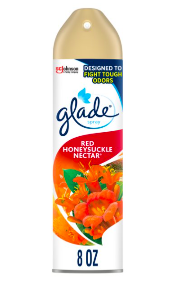 -El spray de néctar Glade Red Honeysuckle Room Spray, totalmente rediseñado, proporciona hasta 7 horas de frescura por uso.