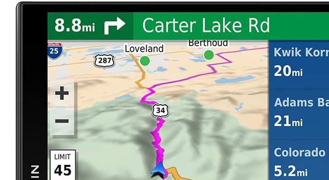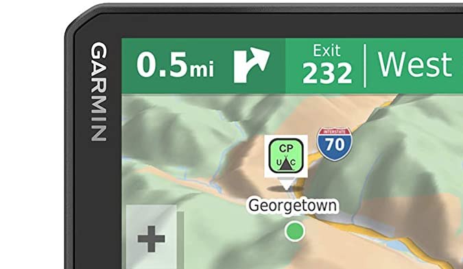 El enrutamiento personalizado considera el tamaño y el peso de su RV y luego encuentra la mejor ruta (no disponible en todas las áreas)