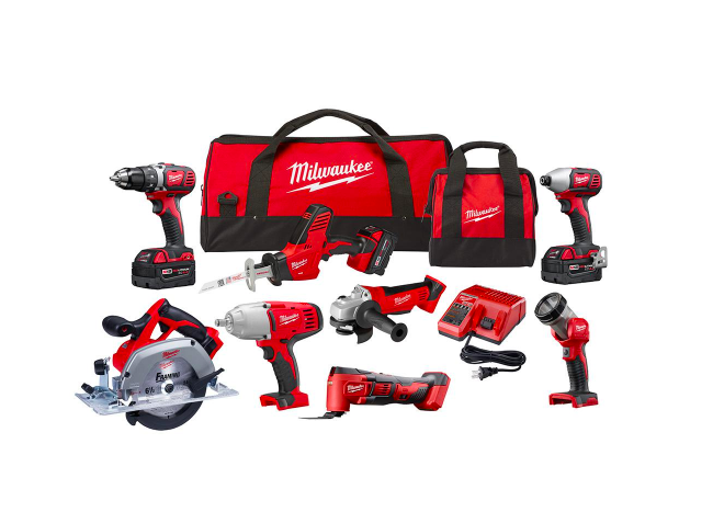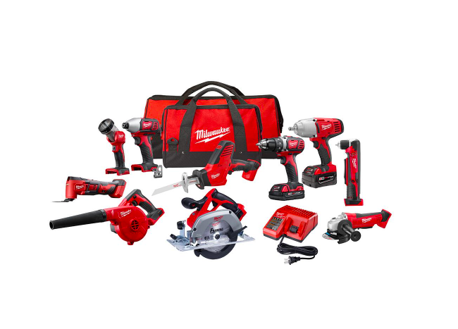 Incluye: (1) taladro / destornillador cepillado 2606-20 M18; (1) Atornillador de impacto 2656-20 M18 de 1/4 pulg.; (1) 2625-20 M18 hackzall; (1) sierra circular M18; (1) Cortadora / amoladora M18 de 4-1 / 2 pulg.; (1) 2615-20 M18 RAD; (1) Multiherramienta 2626-20 M18; (1) Llave de impacto 2663-20 1/2 pulg. De impulsión cuadrada; (1) Luz de trabajo LED 2735-30 M18; (1) Soplador compacto 0884-20 M18; (1) paquete de baterías 48-11-1828 M18 XC REDLITHIUM; (1) paquete de baterías compacto REDLITHIUM 48-11-1815 M18; (1) 48-59-1812 Cargador multivoltaje M12-M18