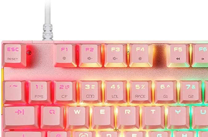 -Alta calidad y rendimiento fiable: Diseño ergonómico compacto y de alta calidad duradero de aleación de aluminio ABS con teclas mecánicas montadas en placa e interruptores, diseño de teclado mecánico de 87 teclas que ahorra espacio libera el espacio de trabajo en tu escritorio sin sacrificar el rendimiento y la comodidad en sesiones de juego
