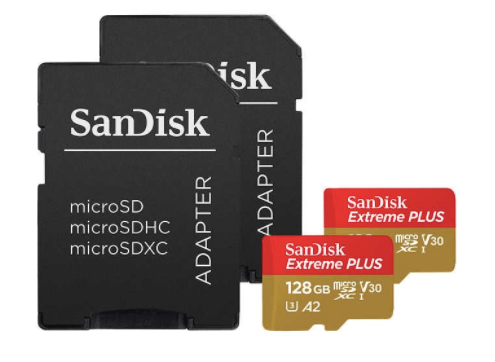 5-SanDisk Extreme Plus 128GB microSD Card with Adapter, 2-pack – $39.99