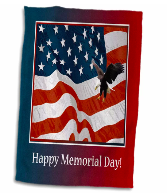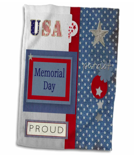 10- Estrellas y palabras patrióticas de Erdenheim en la toalla de mano del Día de los Caídos – $27.99