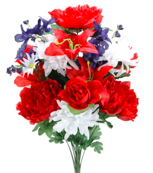 Este arbusto de flores artificiales para el Día de los Caídos es una buena decoración floral del cementerio, pues no se marchita a los pocos días. Es expandible, 24 H x 15 W x 9 D pulgadas.