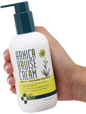 Crema Bruise de Pure Valley con Arnica desvanece rápidamente la aparición de moretones y decoloración de la piel. Se puede utilizar en la cara, brazos, manos, piernas y cuerpo.