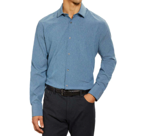 6- Camisa de alto rendimiento Kirkland Signature para hombre, azul oscuro / gris a cuadros – $18.99