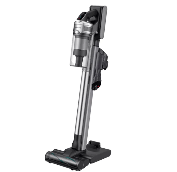 La aspiradora de varilla inalámbrica completa Samsung Jet ™ 90 presenta un diseño liviano y maniobrable, además de un tubo telescópico para una limpieza cómoda.