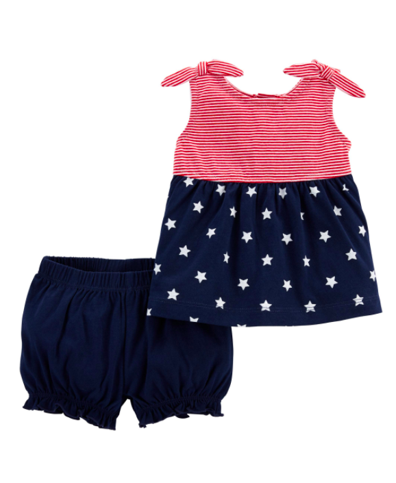 Confeccionado en suave algodón con dos bonitas piezas, ¡este conjunto es perfecto para el 4º! Estamos a tan pocos días de este festejo patriótico que considerar adquirirlo con tiempo es excelente, aprovechando el precio y el entusiasmo de verano.