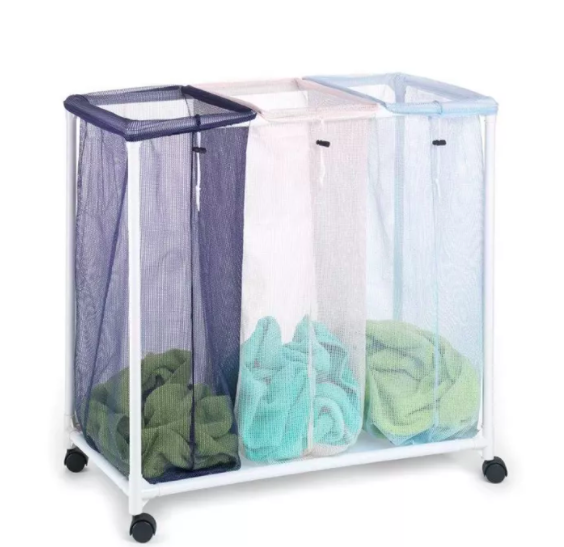 9- Homz 4549010 6 capacidad de carga triple clasificador de malla cesto de lavandería cesto organizador portátil con bolsas extraíbles con ruedas, azul y blanco – de $69.99 a $56.99