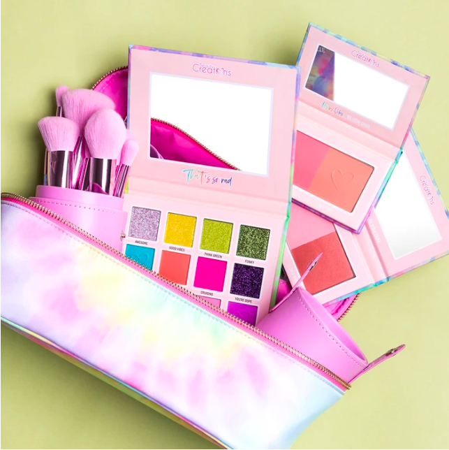 Tiene todos los productos de la colección, junto con la bolsa de maquillaje de edición limitada. Incluye 1 Paleta de sombras de ojos That’s So Rad, 1 Happy – Dúo de rubor Happy Vibes, 1 Juego de brochas de 12 piezas No Bad Days y 1 Estuche de maquillaje That’s So Rad.