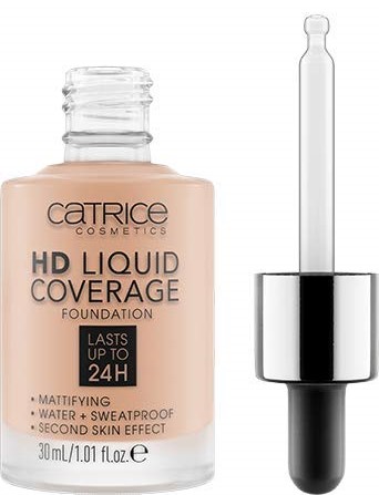 Esta base de maquillaje brinda cobertura de alta definición. La base de cobertura líquida Catrice HD es una base ultraligera para un acabado de aspecto natural.
