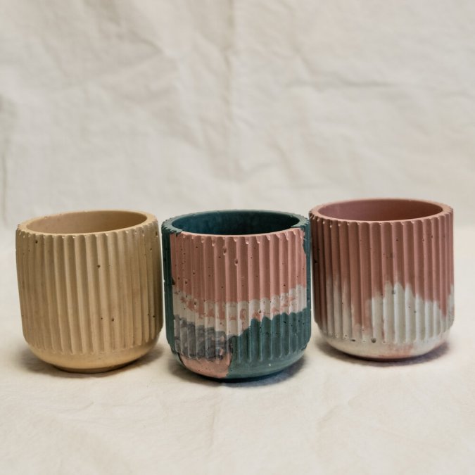 Los maceteros geométricos y votivos de Krizia Flores se han vendido en West Elm, Urban Outfitters y MOCA. Ella organiza talleres ocasionales y ofrece kits personalizados de concreto de secado rápido de bricolaje. concretegeometric.com