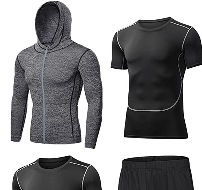 Quitan la humedad de la piel, se mantienen frescas y secas durante el ejercicio, aptas para todas las estaciones para que puedas usarla durante todo el año. En el conjunto de 5 piezas, solo los pantalones cortos están sueltos y las demás piezas son ajustadas. Con precio desde $38.90 el conjunto.