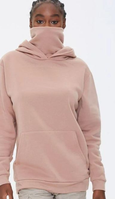 Disponible en 6 colores. Esta es una sudadera con capucha de punto con una mascarilla adjunta, mangas largas, bolsillo canguro y ribete acanalado.