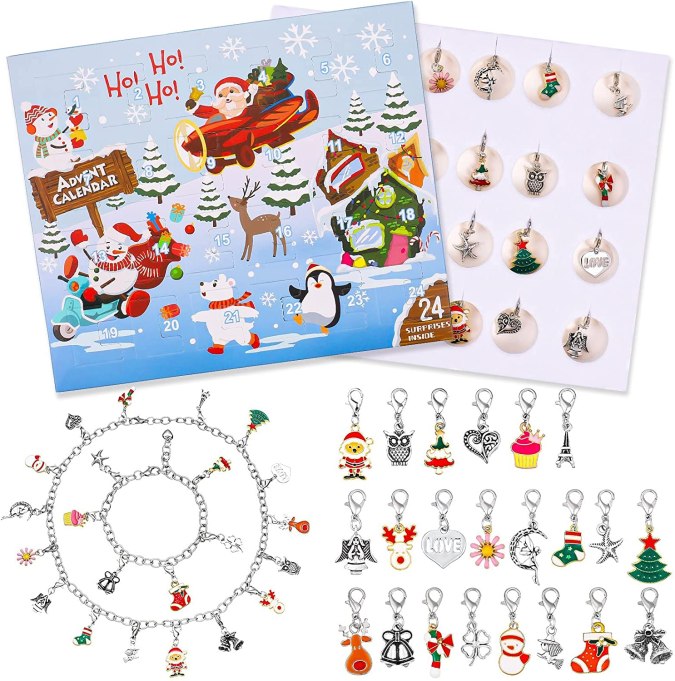 La mayor diversión de este juguete es que no sabes qué hay en la siguiente ventana abierta. Este calendario de adviento es súper delicado y los elegantes dijes con temática navideña son perfectos para que las niñas disfruten del tiempo para hacer pulseras. Consta de 22 cuentas encantadoras, 1 cadena de pulsera y 1 cadena de collar. Todos ellos están hechos de plástico 100% no tóxico y aleación ambiental. Precio $11.99.