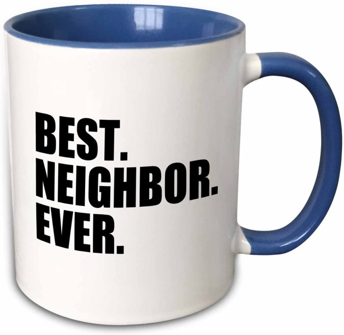 1. Taza con texto "El mejor vecino de todos los tiempos":