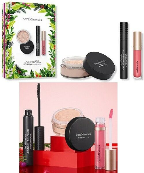 Perfecciona cualquier look de maquillaje con este trio Set & Enhance de bareMinerals. Con 3 productos imprescindibles de tamaño completo, este set de maquillaje viene con un polvo de acabado favorito de las fanáticas, una mascara de pestañas alargadora con infusión de suero y un bálsamo de brillo para los labios.