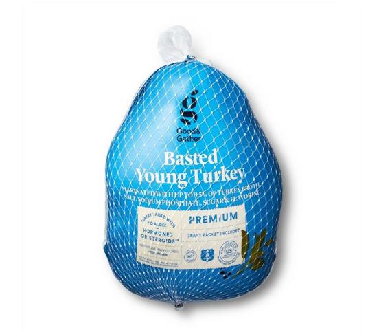 La cena para Thanksgiving cuenta con un pavo joven premium bañado, congelado y de 10 libras. Este delicioso pavo es el centro de atención de la mesa y está disponible a un precio máximo de $15.84, lo que equivale a solo $0.99 por libra. ¡Calidad y sabor incomparables!
