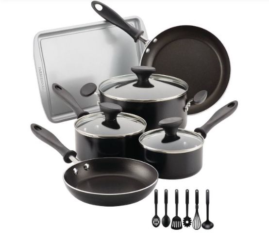3. Rachael Ray Cook + Create Juego de utensilios de cocina antiadherentes de aluminio de 11 piezas