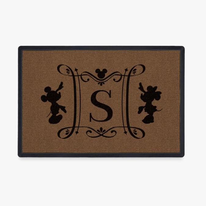 Agrega un toque mágico a tu hogar con esta encantadora alfombra inspirada en la plaza Disneyland de Nueva Orleans. Con un marco de marquesina negro que rodea la letra de tu elección, resaltada por Mickey y Minnie sobre un fondo de fibra de coco.