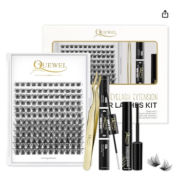 Este kit incluye 144 piezas de racimos de pestañas, herramienta aplicadora de pestañas en racimos y removedor de pegamento. Ofrece una súper sujeción y sellado. Con una valoración de 4.2 sobre 5 estrellas y más de 4,400 calificaciones, es una opción popular con un atractivo descuento del 49%.